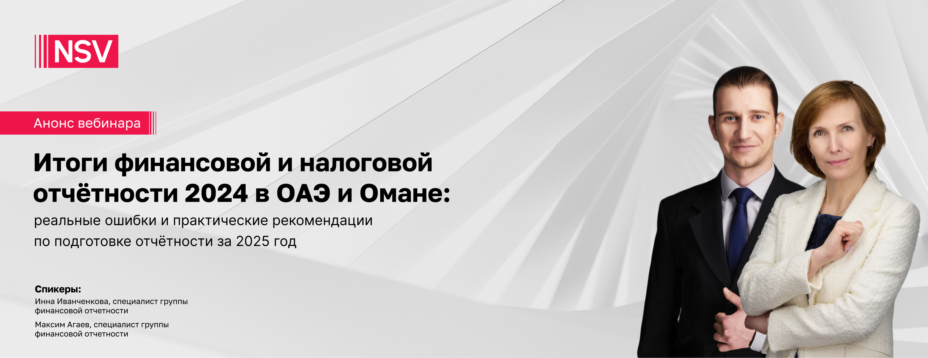 Вебинар26 февраля, в 15:00 (мск) состоится вебинар с экспертами NSV Consulting Инной Иванченковой и Максимом Агаевым на тему «Итоги финансовой и налоговой отчётности 2024 в ОАЭ и Омане: реальные ошибки и практические рекомендации по подготовке отчётности за 2025 год».