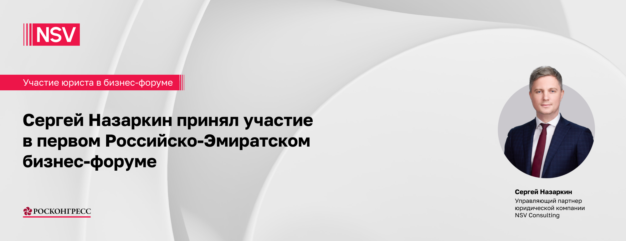 КонференцияСергей Назаркин, управляющий партнер NSV Consulting, 10 декабря принял участие в первом Российско-Эмиратском бизнес-форуме в Дубае. Форум приурочен к 12-му заседанию Межправительственной российско-эмиратской комиссии и прошел при поддержке Министерства промышленности и торговли Российской Федерации совместно с Фондом Росконгресс.
