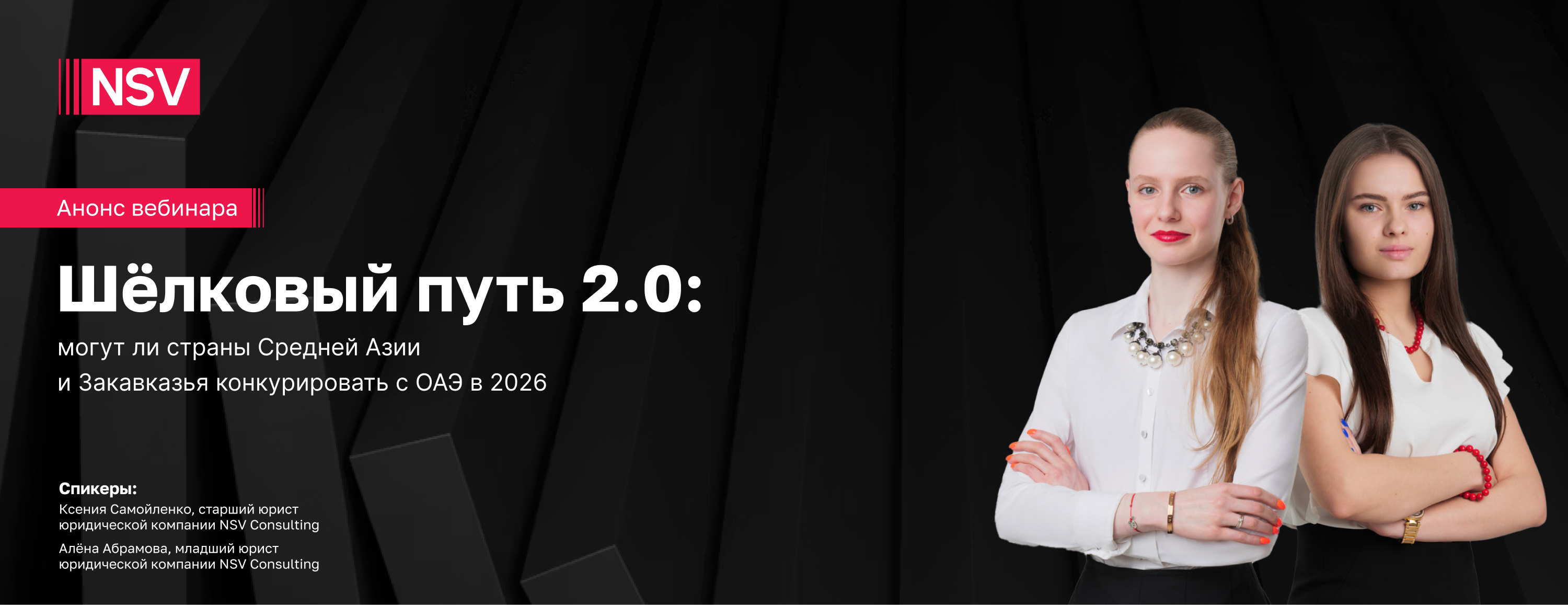 ВебинарПриглашаем на вебинар в четверг, 16 апреля, в 15:00 (мск) на тему «Шёлковый путь 2.0: могут ли страны Средней Азии и Закавказья конкурировать с ОАЭ в 2026» с экспертами NSV Consulting Ксенией Самойленко и Алёной Абрамовой.